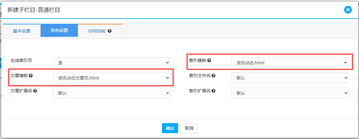 发布设置中指定一下索引模板和文章模板(可参考同级栏目设置)。